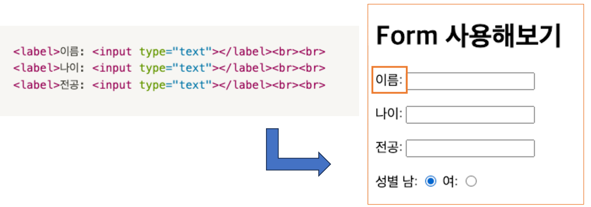 - label 요소를 이용하면 사용성 높일 수 있다.