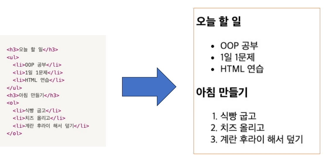 - 태그(tag) : 요소를 정의해준다. 여는태그/닫는태그