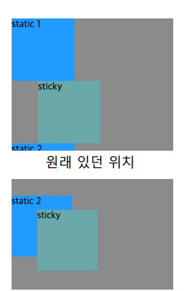 - 일반적인 요소처럼 보이다가, 어느 시점부터 fixed가 됨. (화면의 위쪽 경계와 거리가 줄어들면!)