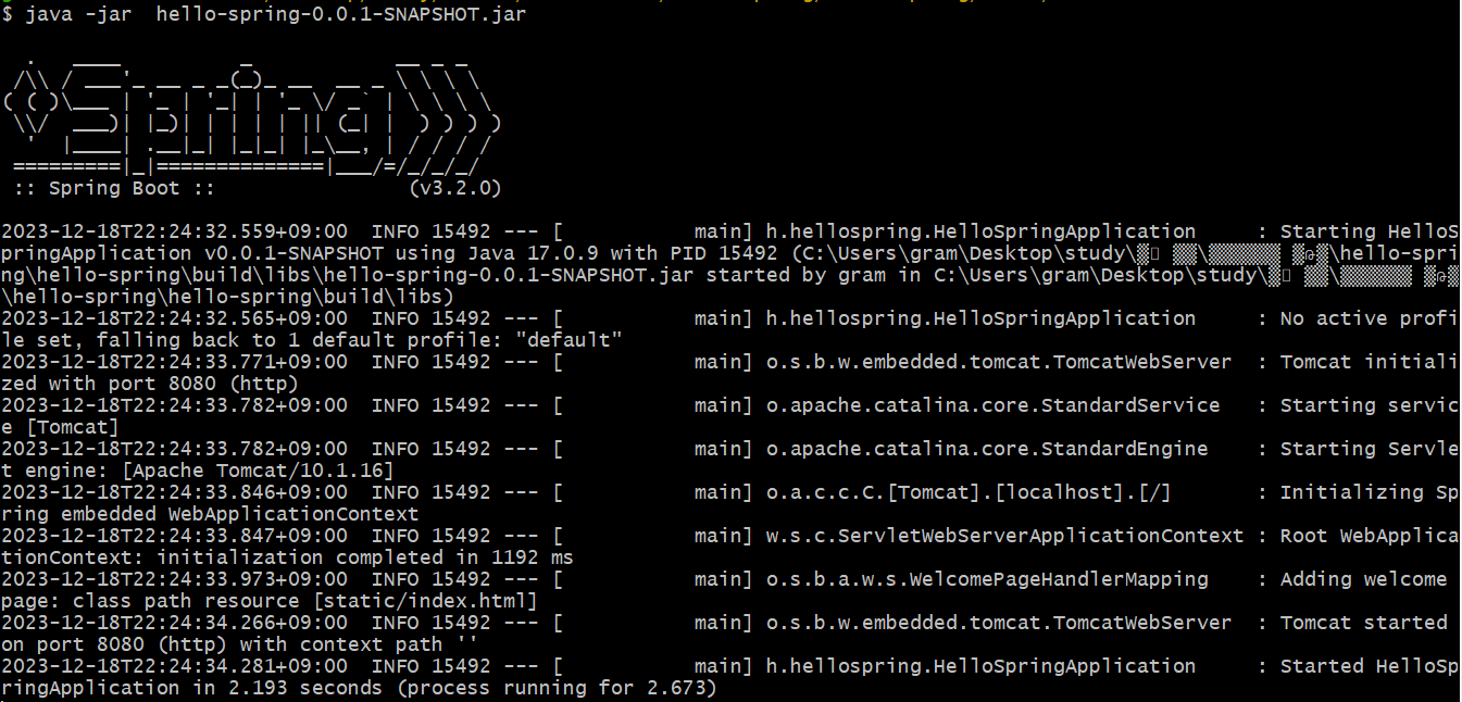 7. java -jar jar파일 붙여넣기 하면 실행 완료