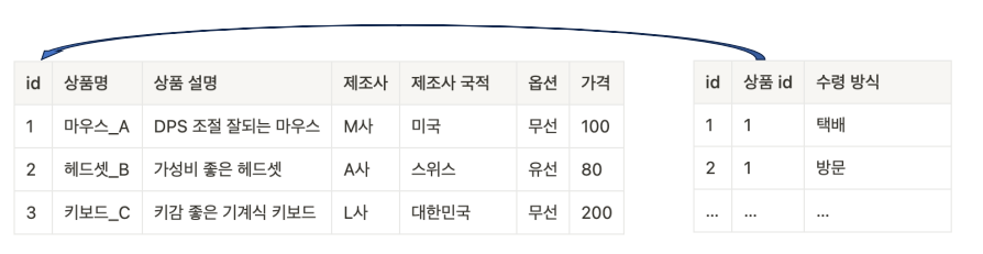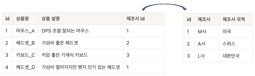 >> 왼쪽 테이블의 제조사 id는 오른쪽 테이블의 id를 의미