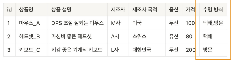 >> 수령 방식은 하나의 레코드에 복수의 속성값을 정의하고 있다...