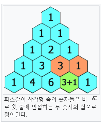: 파스칼의 삼각형과 연관.