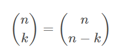 : n개 중에서 k를 선택하는 것 = n개 중에서 선택받지 못할 나머지(n-k)개를 선택하는 것