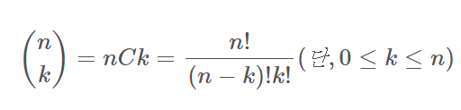 : 주어진 크기 집합에서 원하는 개수만큼 순서없이 뽑는 조합의 가짓수.