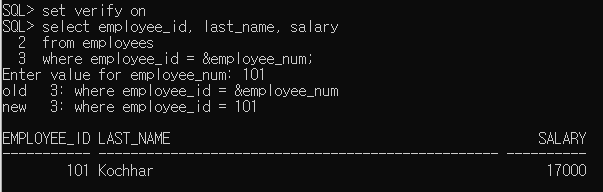 : SET VERIFY ON - μΉν λ³μλ₯Ό κ°μΌλ‘ λ°κΎΈκΈ° μ νμ μΉν λ³μμ νμλ₯Ό ν κΈ