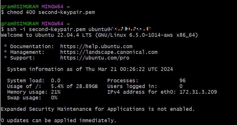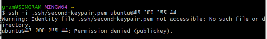 : keypair 파일이 있는 폴더에서 gitBash 실행 -> ssh 명령어 실행