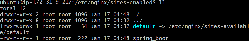 > 설정 파일을 /etc/nginx/sites-enabled/ 폴더에 넣어주면 된다. 단계별로 진행.