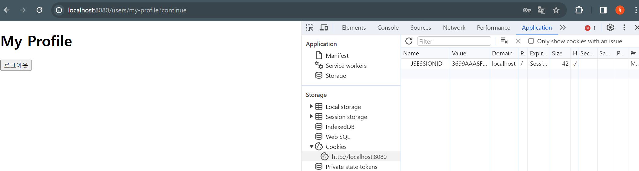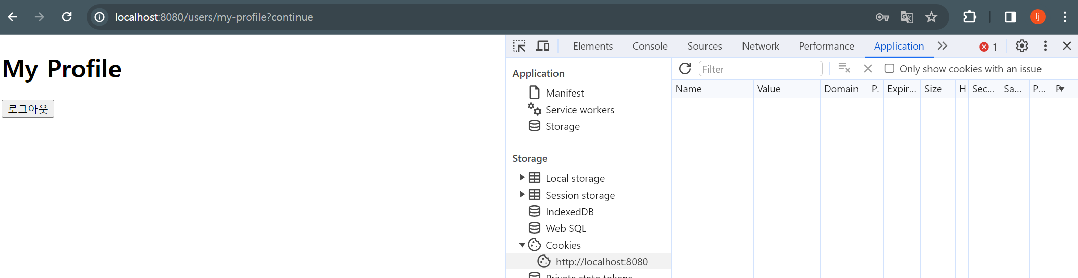1) /users/my-profile로 가면 사용자는 로그인한 상태이다. 이때 이 경로의 인자로 Authentication을 추가하여 넘겨주면 이 사용자와 관련된 인증 정보를 확인할 수 있다.