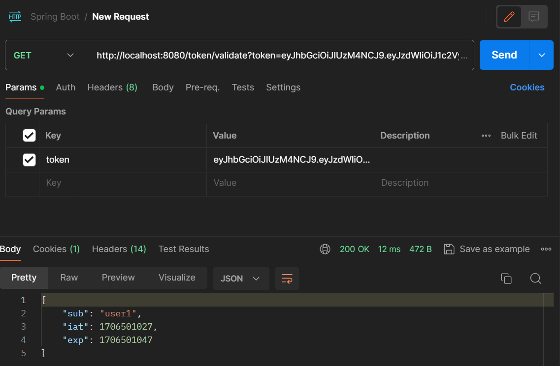 // 토큰을 확인하는 메서드 (JwtTokenUtils.validate()) boolean값 반환