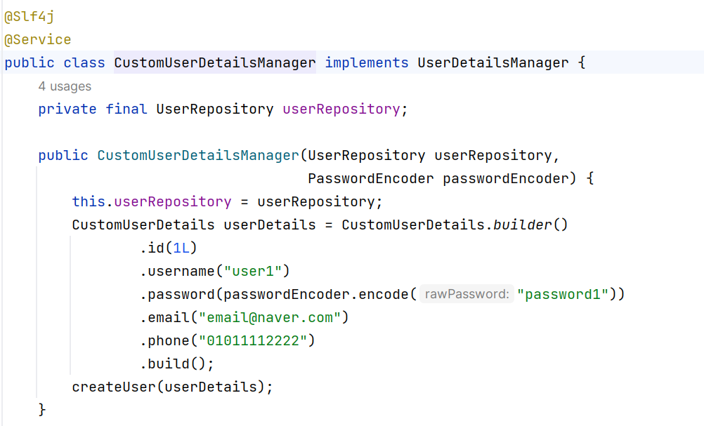 | CustomUserDetailsManager과 CustomUserDetails 만들기 (2) | 2024.01.26 |