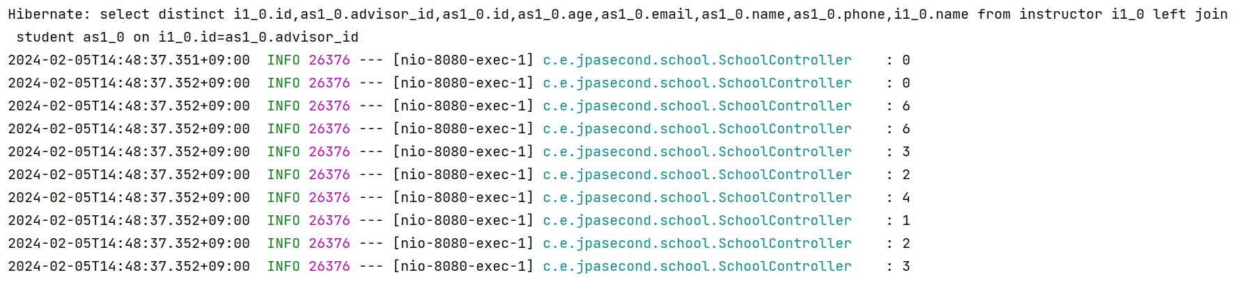 3&4) @BatchSize로 인해 정해진 수량만큼의 Instructor를 기준으로 Student 검색