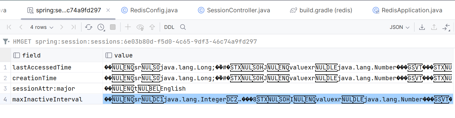- HMGET key field field fiel... : key의 여러 field의 value를 반환
