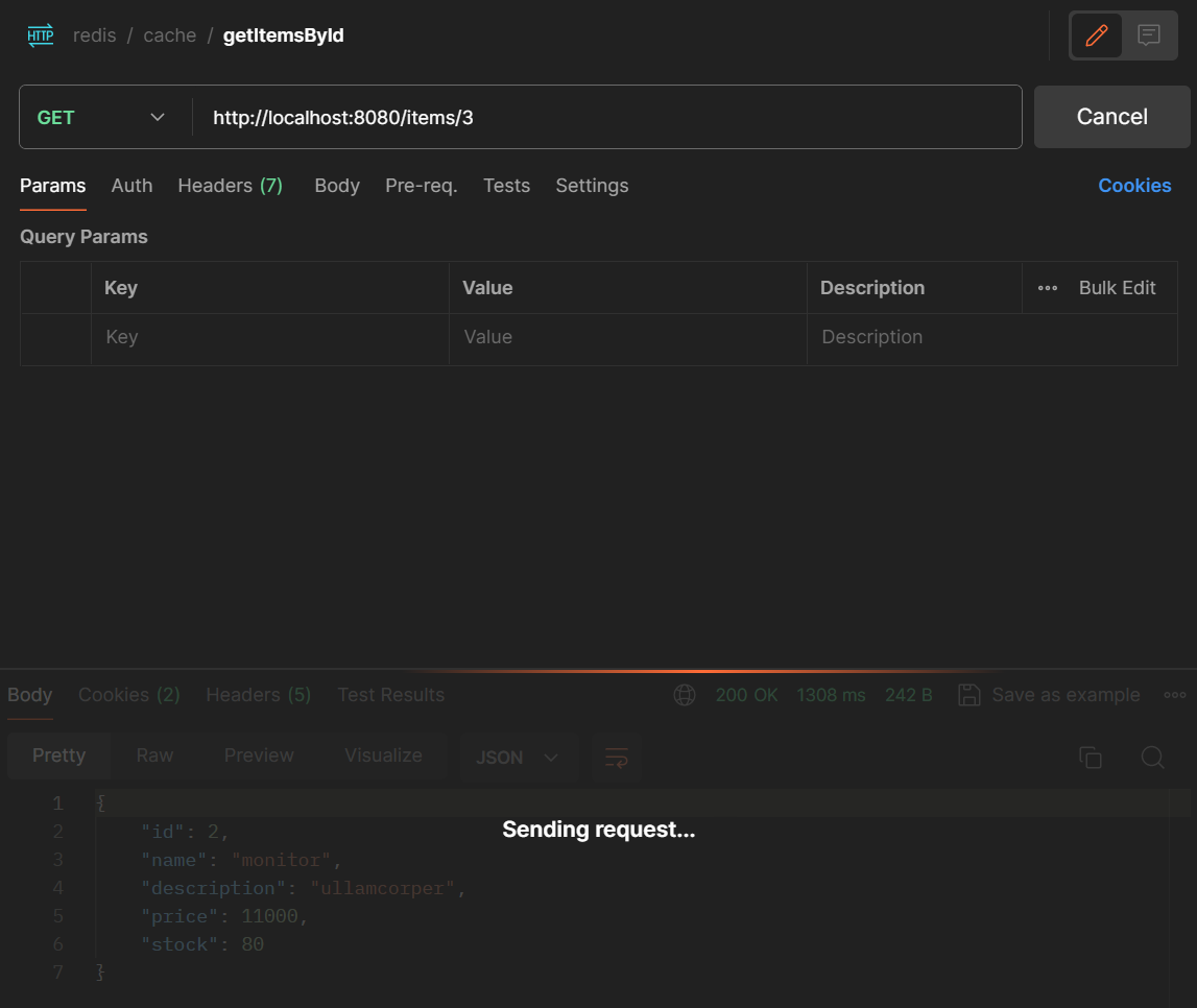 >> 처음 GET 요청을 보냈을 시에는 지연이 있지만, 이후 다시 요청을 보냈을 때에는 캐시에 저장된 정보를 가져오기 때문에 훨씬 빠르게 가져온다. > 그 후 20초가 지나면 다시 지연이 생기고, 캐시에 다시 저장된다.