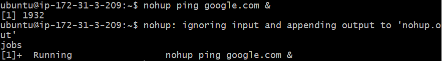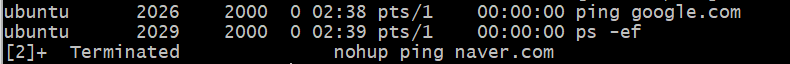 - 예를 들어 만약 nohup을 이용해 프로세스를 백그라운드에 실행한 상태에서 서버와 접속을 해제한 뒤 다시 접속을 했을 때에는 jobs 명령으로 해당 프로세스를 확인할 수 없다. > ps로 확인!
