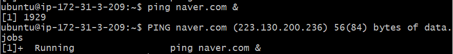 - 처음부터 프로세스를 백그라운드에 실행하고 싶다면 명령어 뒤에 & 작성 (단, 해당 명령어가 출력을 일으키면 내용이 계속 터미널에 출력된다)