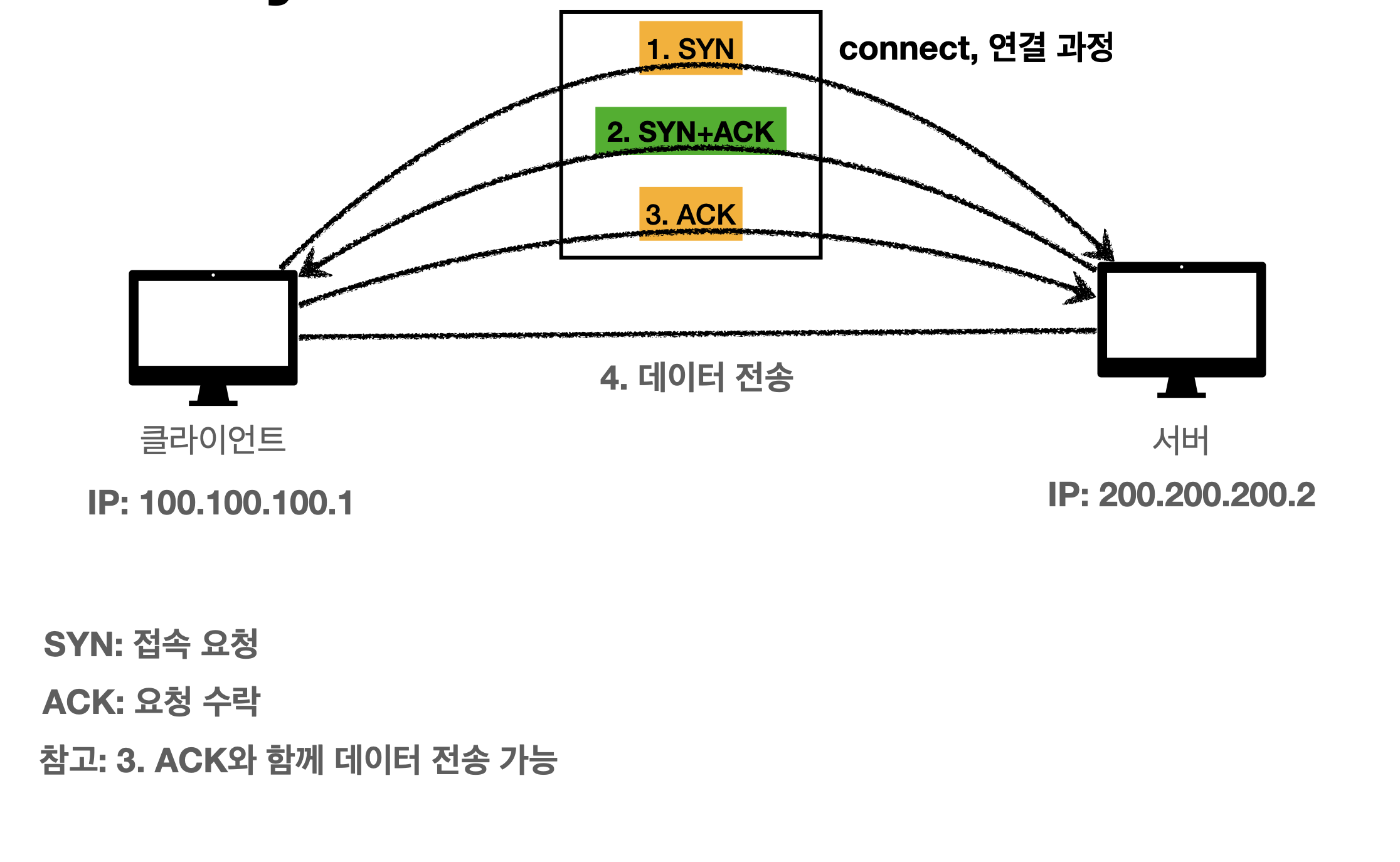 클라이언트에서 서버에게 SYN이라는 메시지를 보내고,