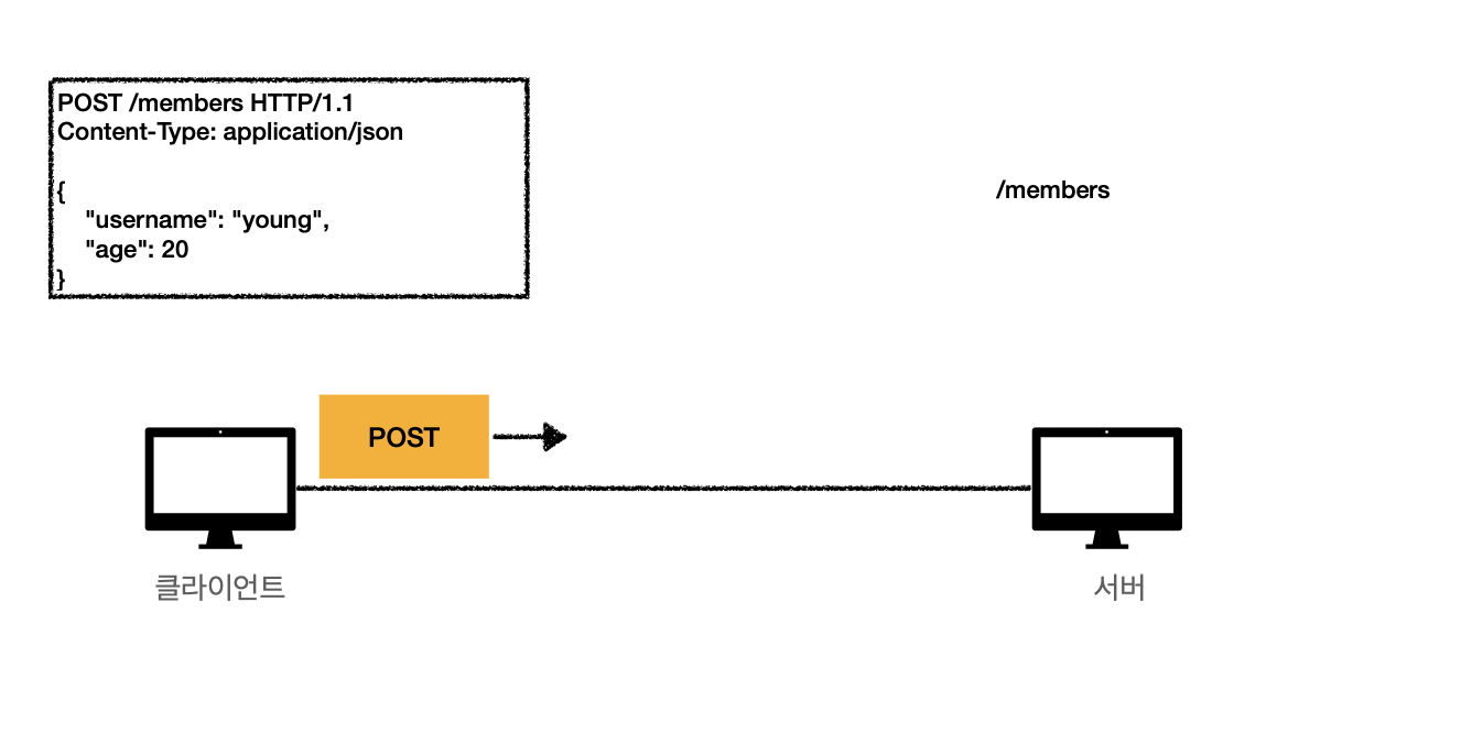 - 컬렉션 (Collection) : 서버가 관리하는 리소스 디렉터리. 서버가 리소스의 URI를 생성하고 관리한다. 여기서 컬렉션은 /members