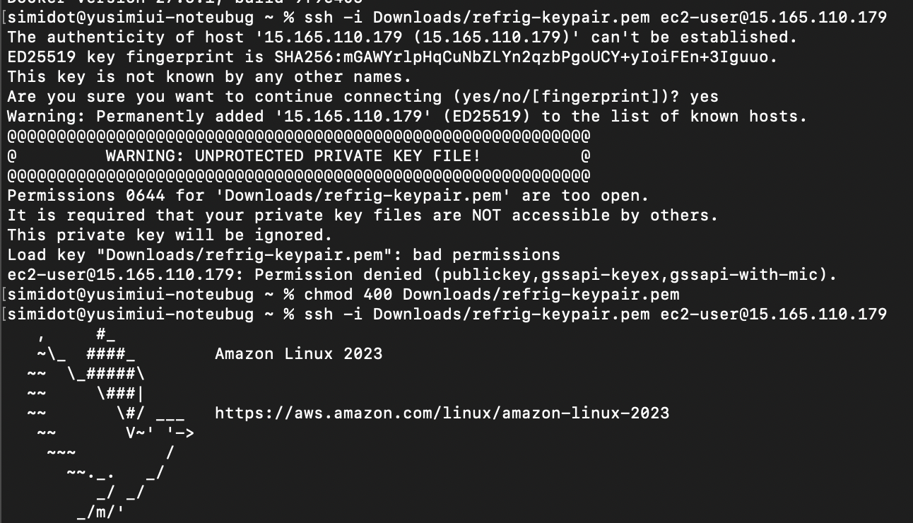 즉, 프라이빗 키 파일이 다른 사용자에게 읽기 권한이 없도록 제한되어 있어야 하는데, 현재 Permissions 0644로 설정되어 있어 다른 사용자도 이 파일을 읽을 수 있는 상태이다.