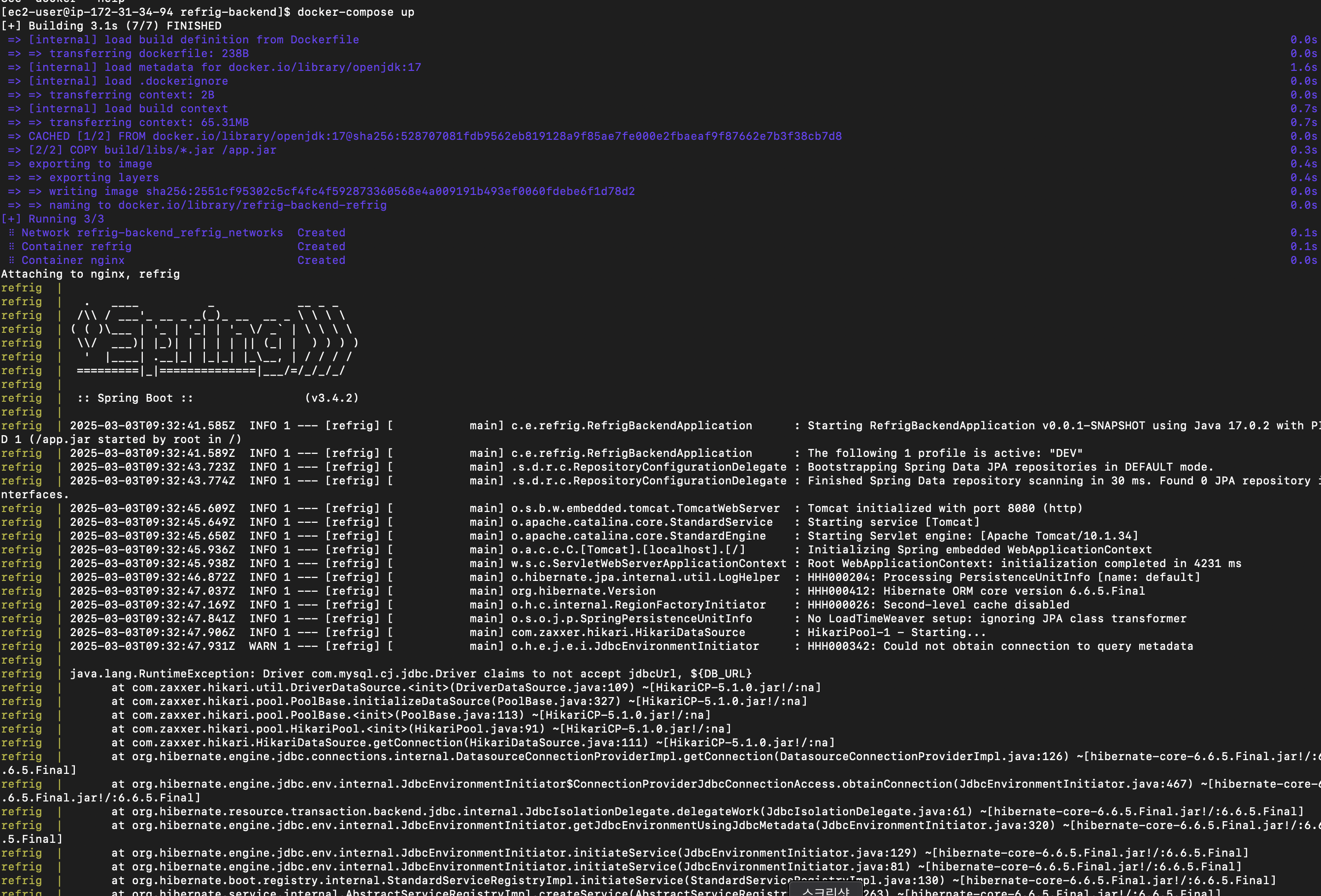 refrig | 2025-03-03T09:32:49.886Z ERROR 1 --- [refrig] [ main] o.s.boot.SpringApplication : Application run failed