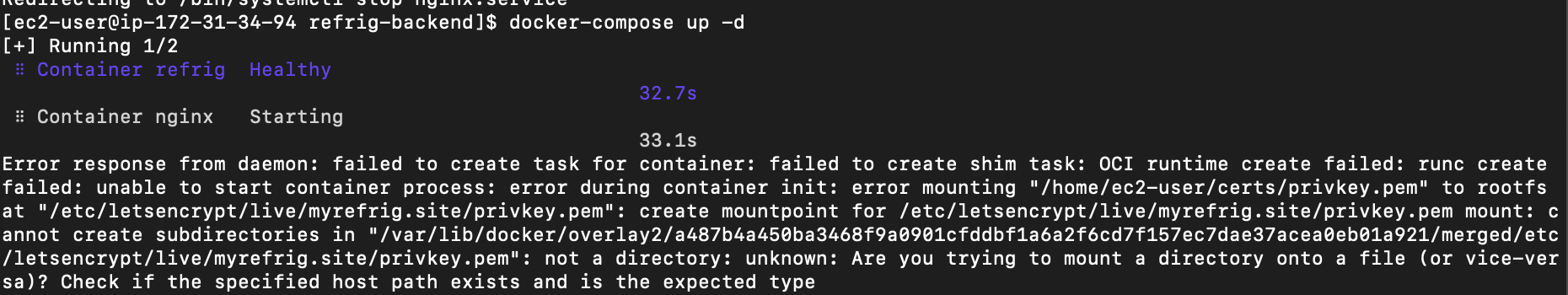 dependency failed to start: container refrig exited (1)