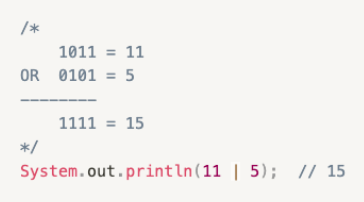 : 피연산자의 각 자리의 비트를 비교. 두 비트 중 하나라도 1이면 1, 아니면 0