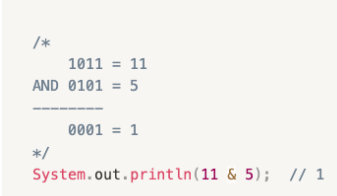 : 피연산자의 각 자리의 비트를 비교. 두 비트가 모두 1이면 비트도 1, 아니면 0
