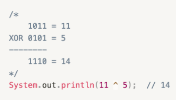 : 피연산자의 각 자리의 비트를 비교. 두 비트가 서로 다르면 1, 서로 같으면 0